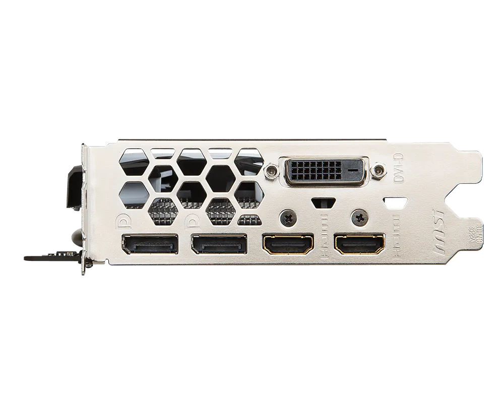 The front panel of the card features a variety of outputs. There are two DisplayPort 1.4 outputs and two HDMI 2.0b outputs as well as a dual link DVI-D output. Combined with AMD’s Eyefinity, the GPU can provide an immersive gaming experience using up to four monitors.
